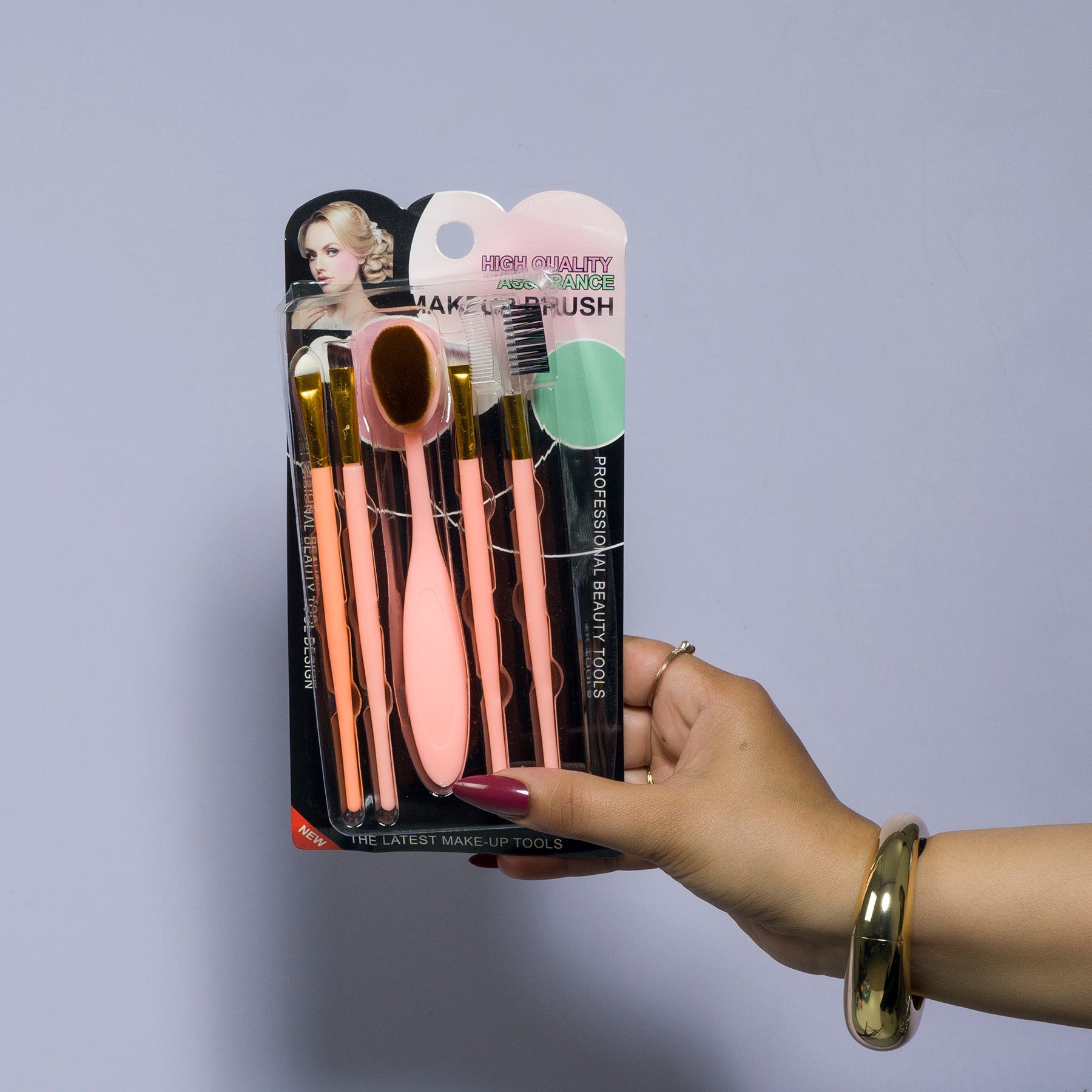 Get flawless makeup looks with our 5-in-1 Professional Makeup Brush Set. Includes brushes for blending, contouring, and detailing, with soft bristles and ergonomic handles.