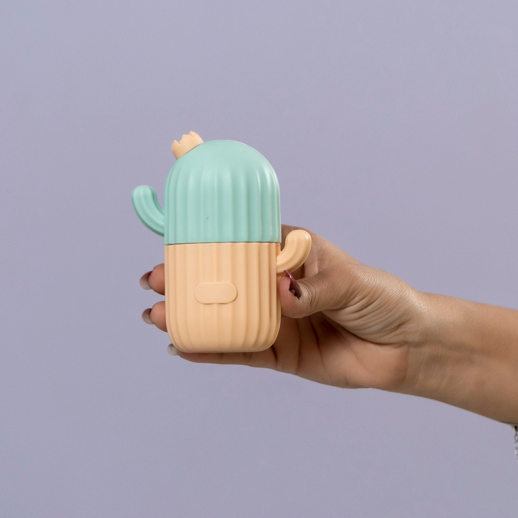 Cute cactus-design handheld ice roller made for soothing skin, reducing puffiness, and instant cooling. Ideal for daily skincare, under-eye care, and face massage.