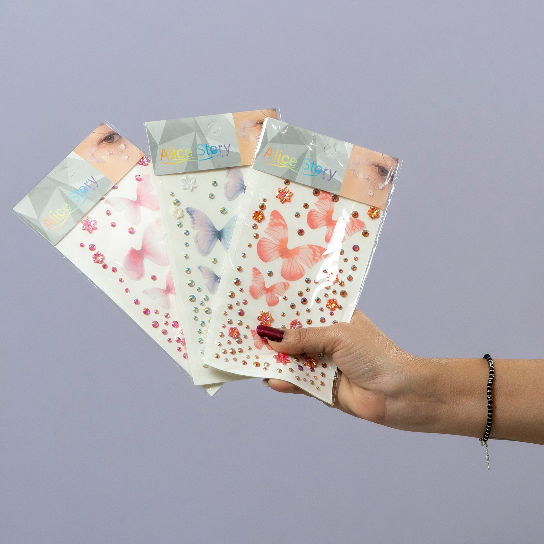 Design: Butterfly motifs with rhinestone-style dots
