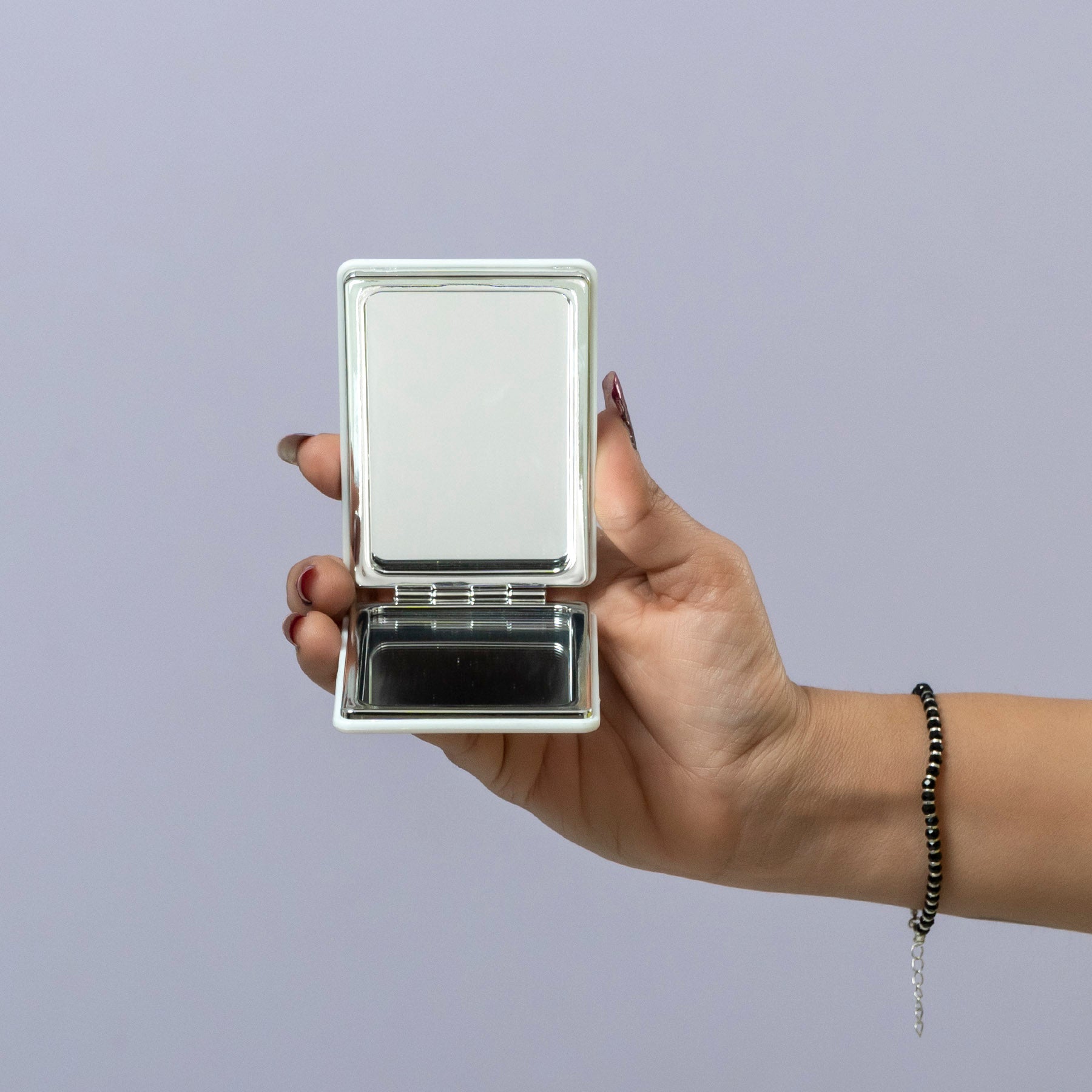 Adorable pocket-sized compact mirror featuring soft pastel illustrations with smooth rounded edges. Lightweight and easy to carry, perfect for quick touch-ups on the go or daily handbag essentials.