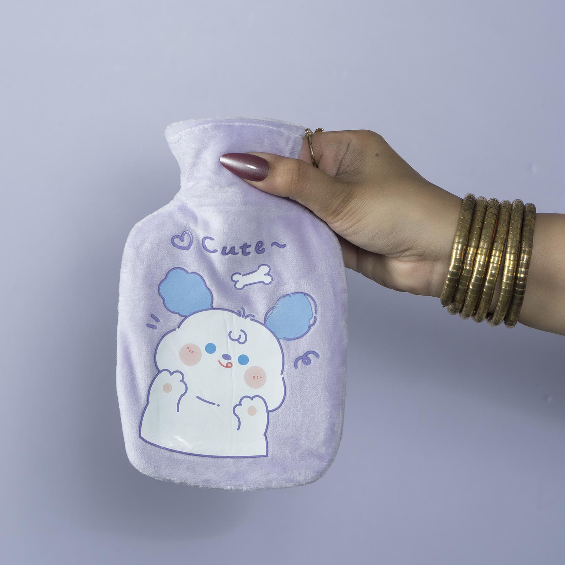 Cute Printed Mini Hot Water Bag – Soft plush cover with adorable animal prints (bear, cat, bunny, dog). Perfect for soothing period cramps, body aches, or keeping hands warm.