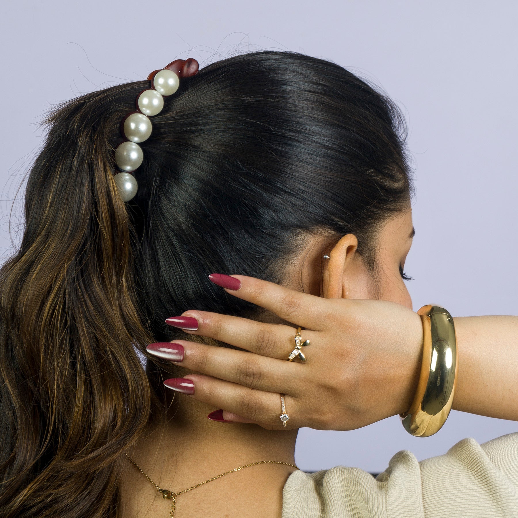 Style meets strength with our Pearl Banana Clip. Made from durable plastic, this elegant clip is designed to hold your hair securely in place while adding a touch of sophistication with its smooth pearl finish. Ideal for everyday wear or special occasions, it's available in 6 versatile colors to match any outfit.