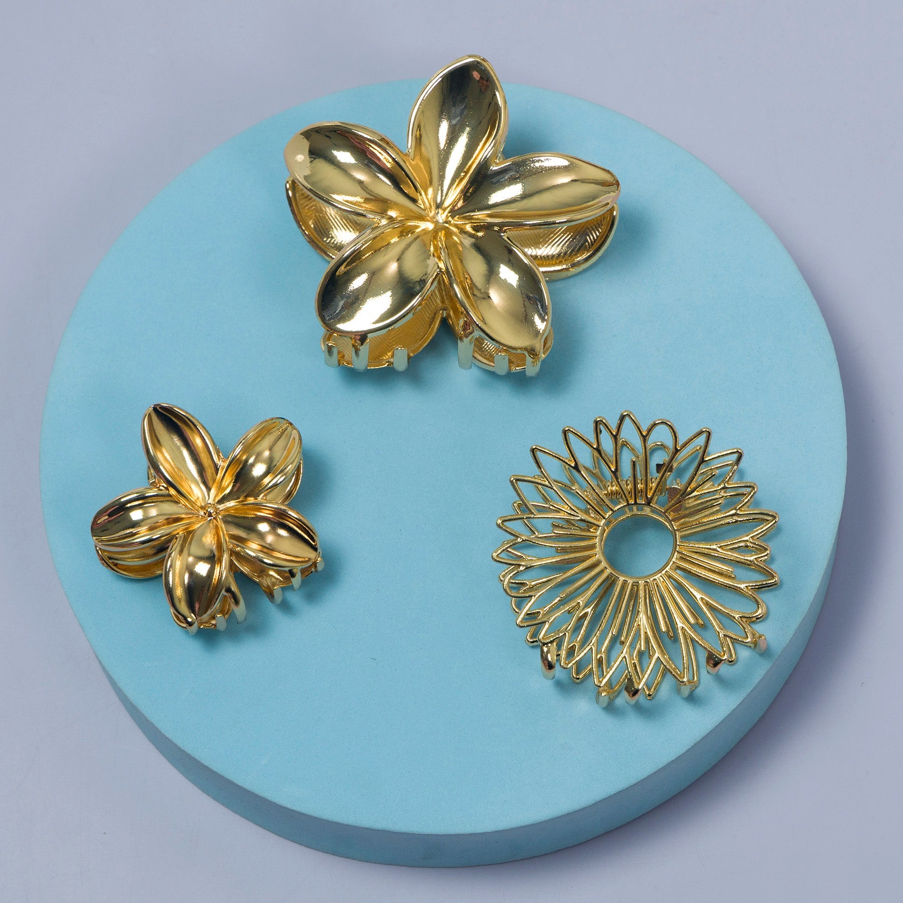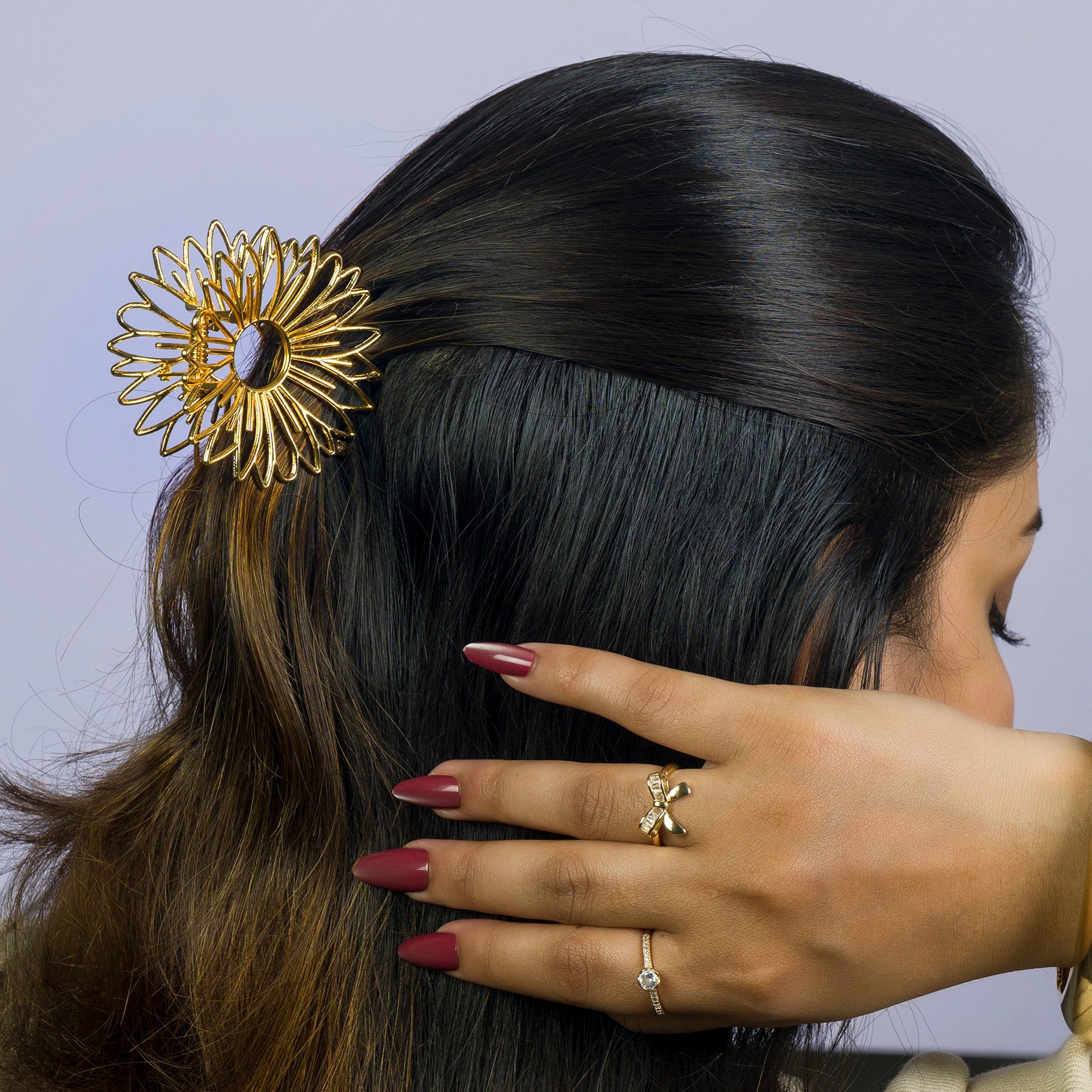 Elevate your hairstyle with our Golden Finish Metal Hair Claw. Crafted from sturdy metal with a polished gold-like finish (not real gold plated), this clip adds a premium touch to your look. It's stylish, strong, and perfect for both casual and special occasions.