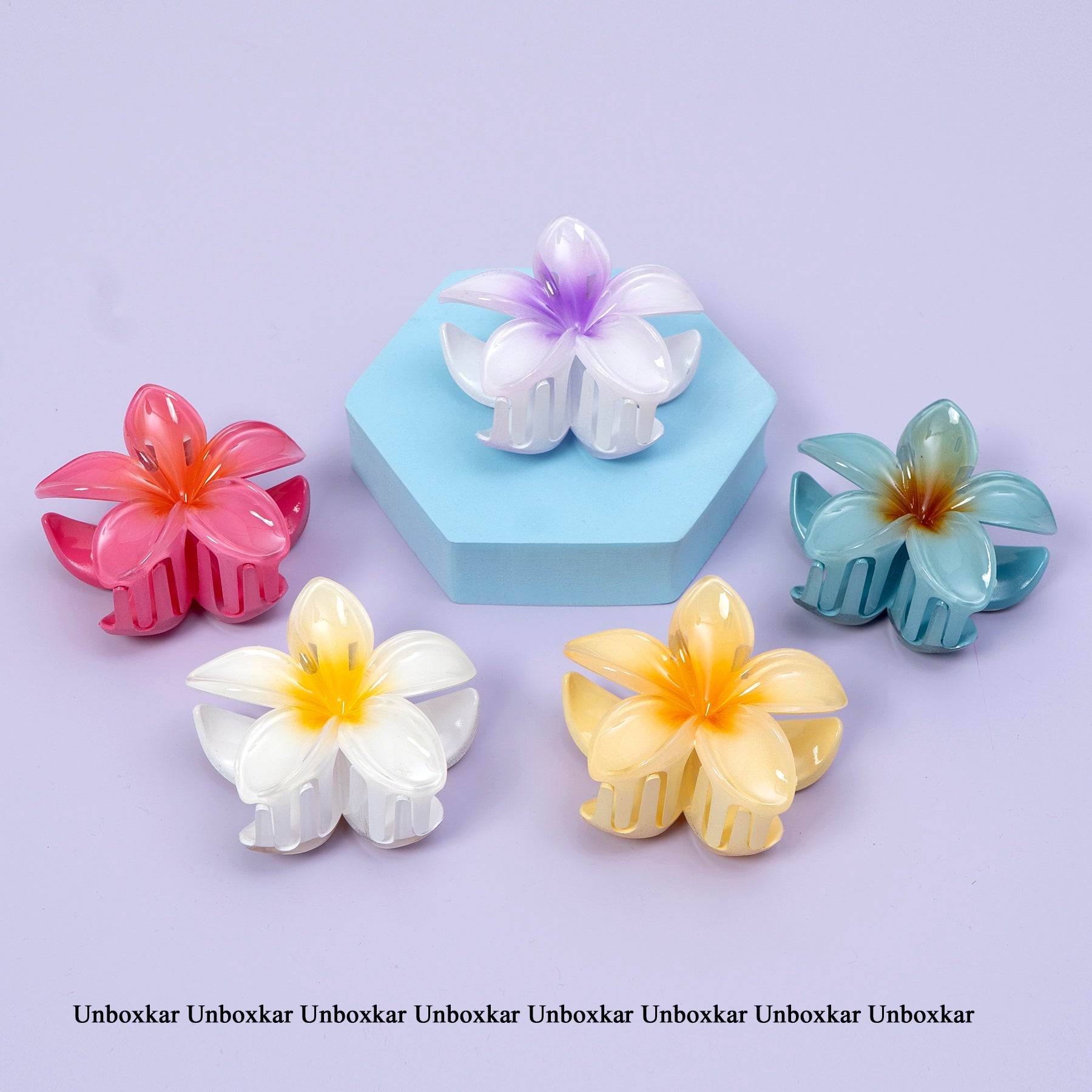 2. Crafted from durable plastic and featuring a strong metal alloy spring, these cute plumeria claw clips offer a secure hold for both thick and thin hair types. The wide opening of over 7 cm ensures a comfortable fit for long or short hair.
