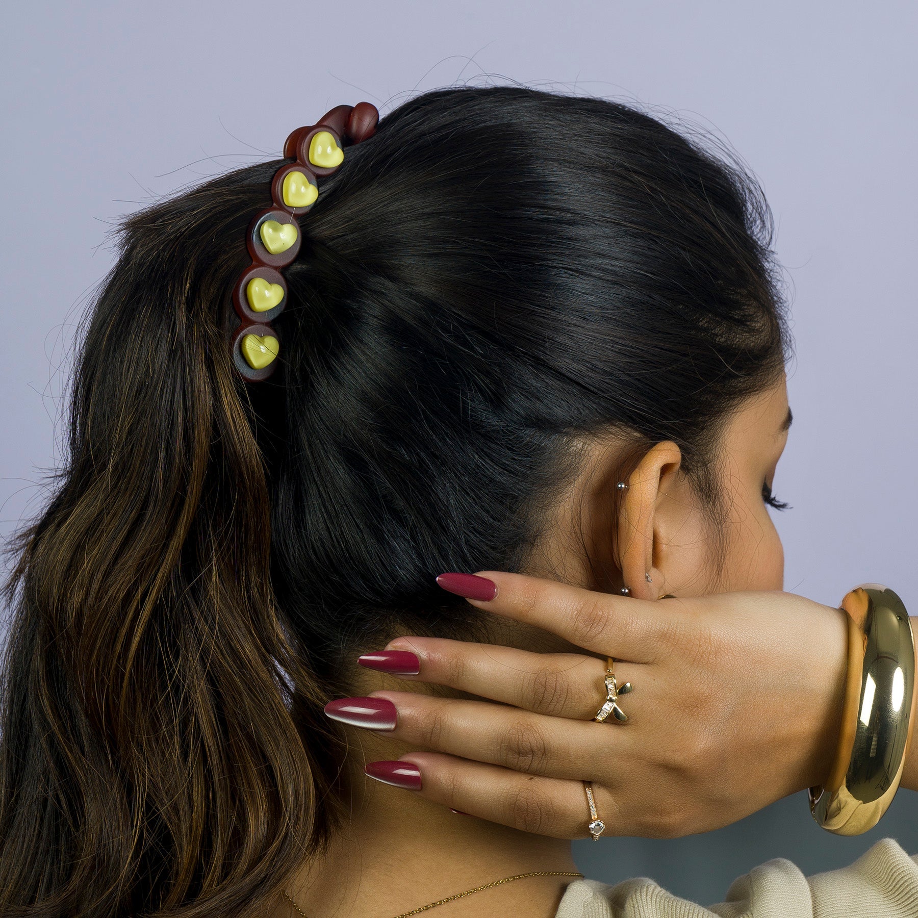 Add a cute twist to your hairstyle with our Heart Shape Banana Clip. Crafted from durable plastic, this charming clip features a heart-shaped design that offers a strong, secure hold. Perfect for daily use or special occasions, itβs available in 6 lovely colors to suit every mood and outfit.