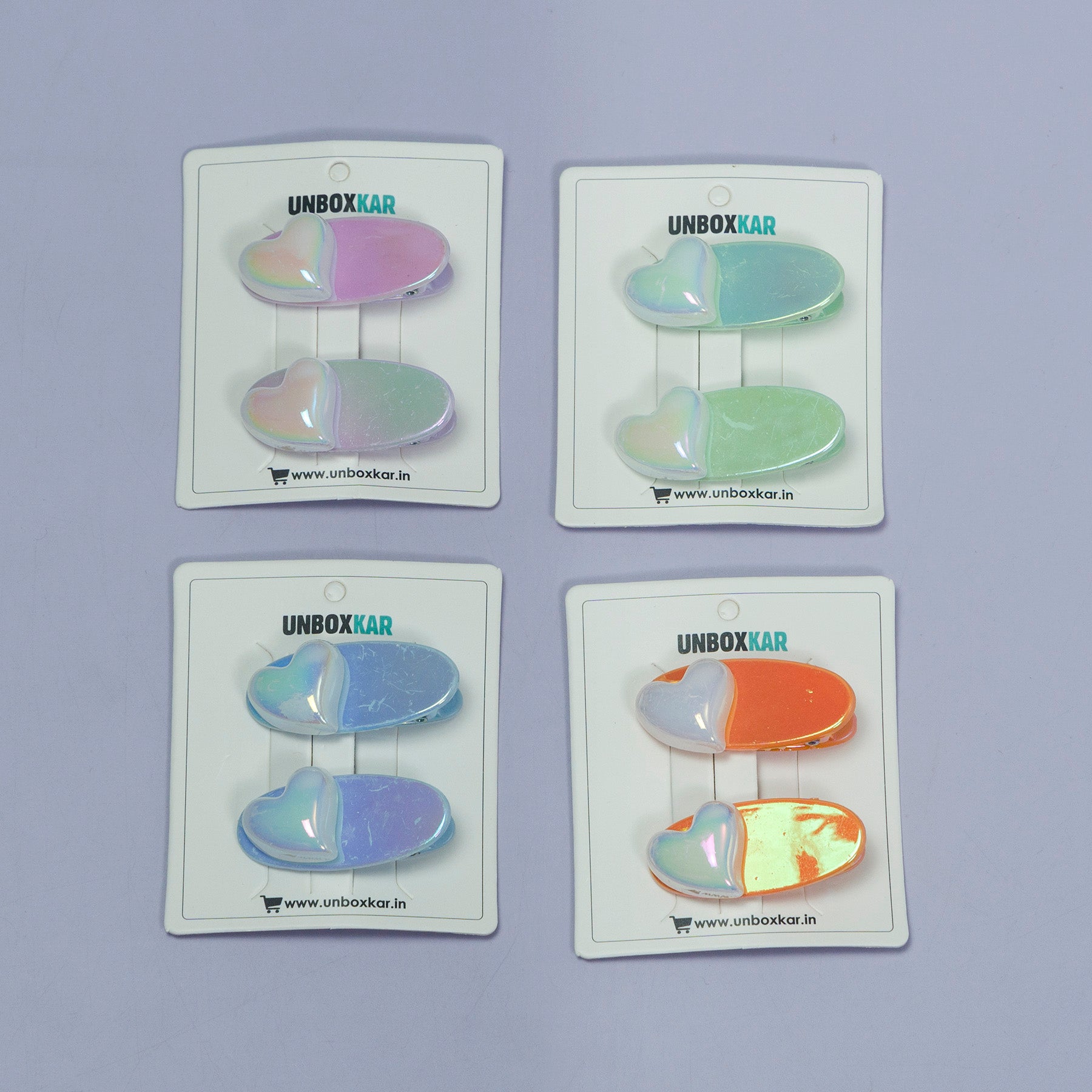 Bring a pop of color and shine to your hairstyle with our Iridescent Heart Hair Clip Set. Featuring a glossy, color-shifting finish with a cute heart design, these clips are perfect for kids, teens, and anyone who loves playful accessories. Each set includes two matching clips with a sturdy clasp for a secure hold.