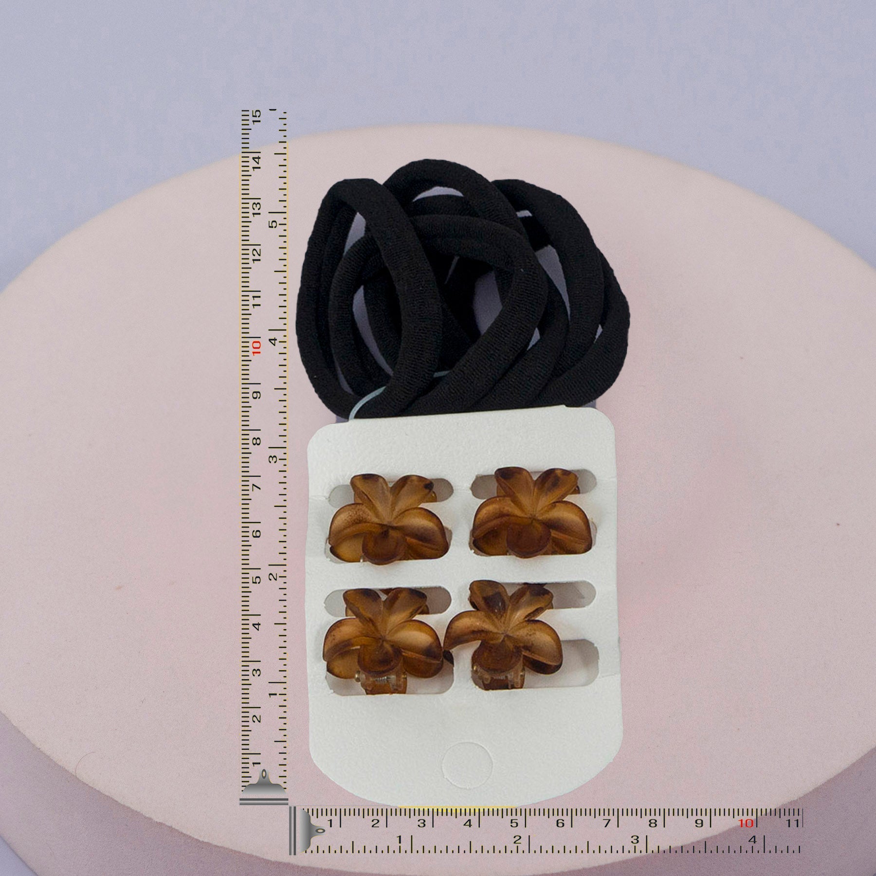 Useful 10-in-1 set with 4 mini flower claw clips and 6 black elastic hair ties. A perfect daily combo for secure and stylish hair management.