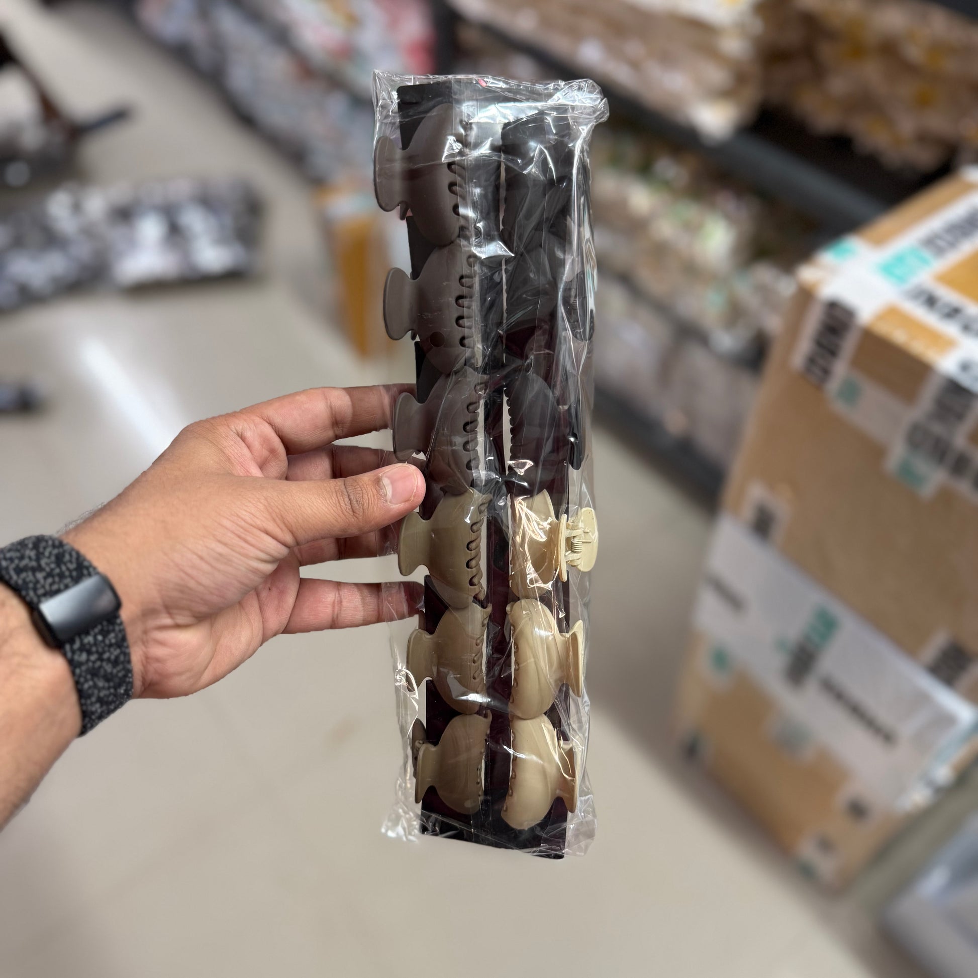 A stylish set of 4 matte-finish mini claws perfect for everyday half-tie hairstyles. Strong grip, premium feel, and versatile neutral colours.