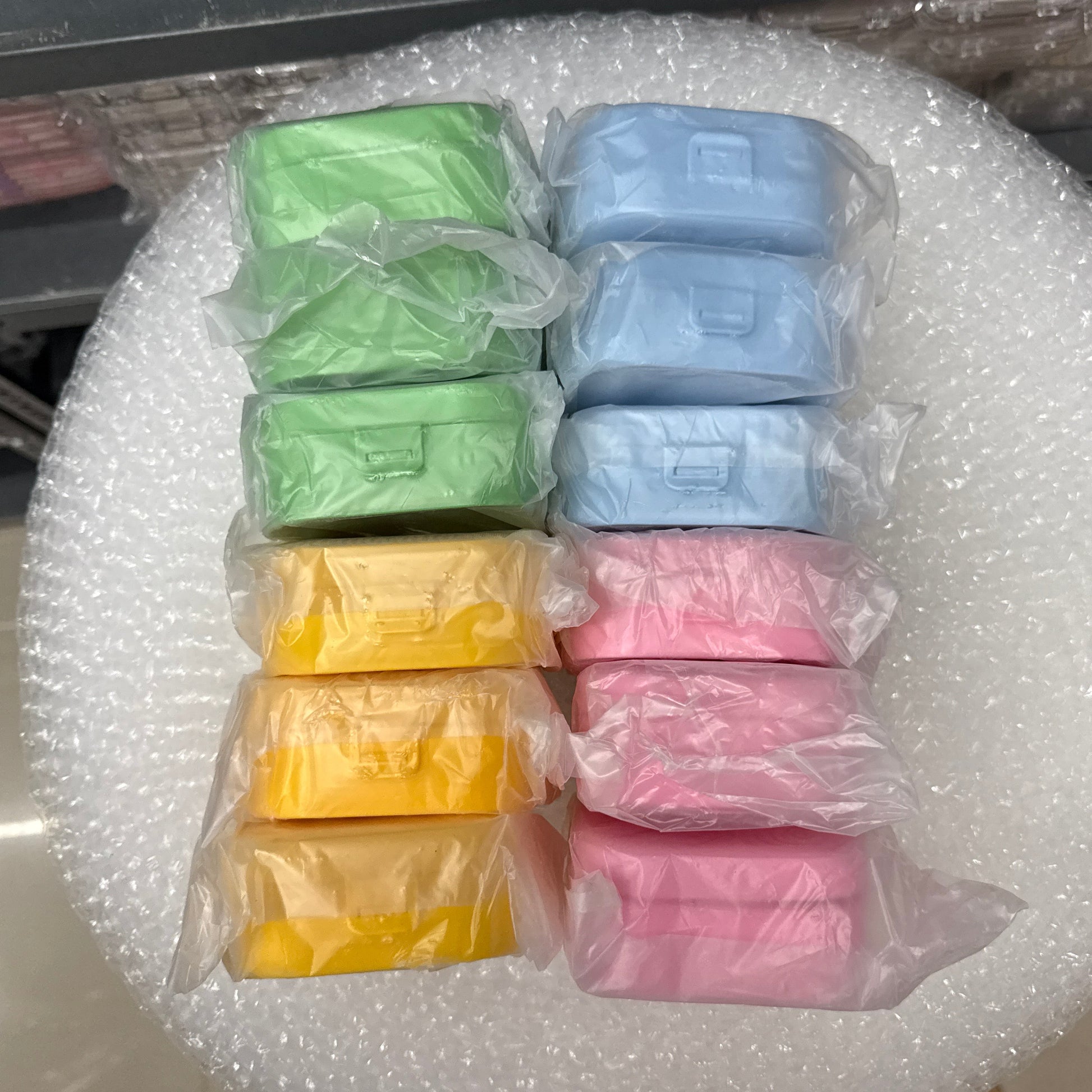 Colors: Pink, Blue, Yellow, Green
