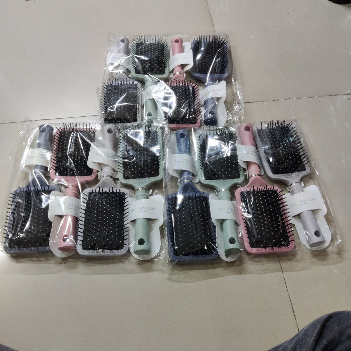 Lightweight paddle-style hair brush designed for smooth detangling and gentle scalp contact. Features flexible bristles with rounded tips and a comfortable handle, suitable for daily use on all hair types.