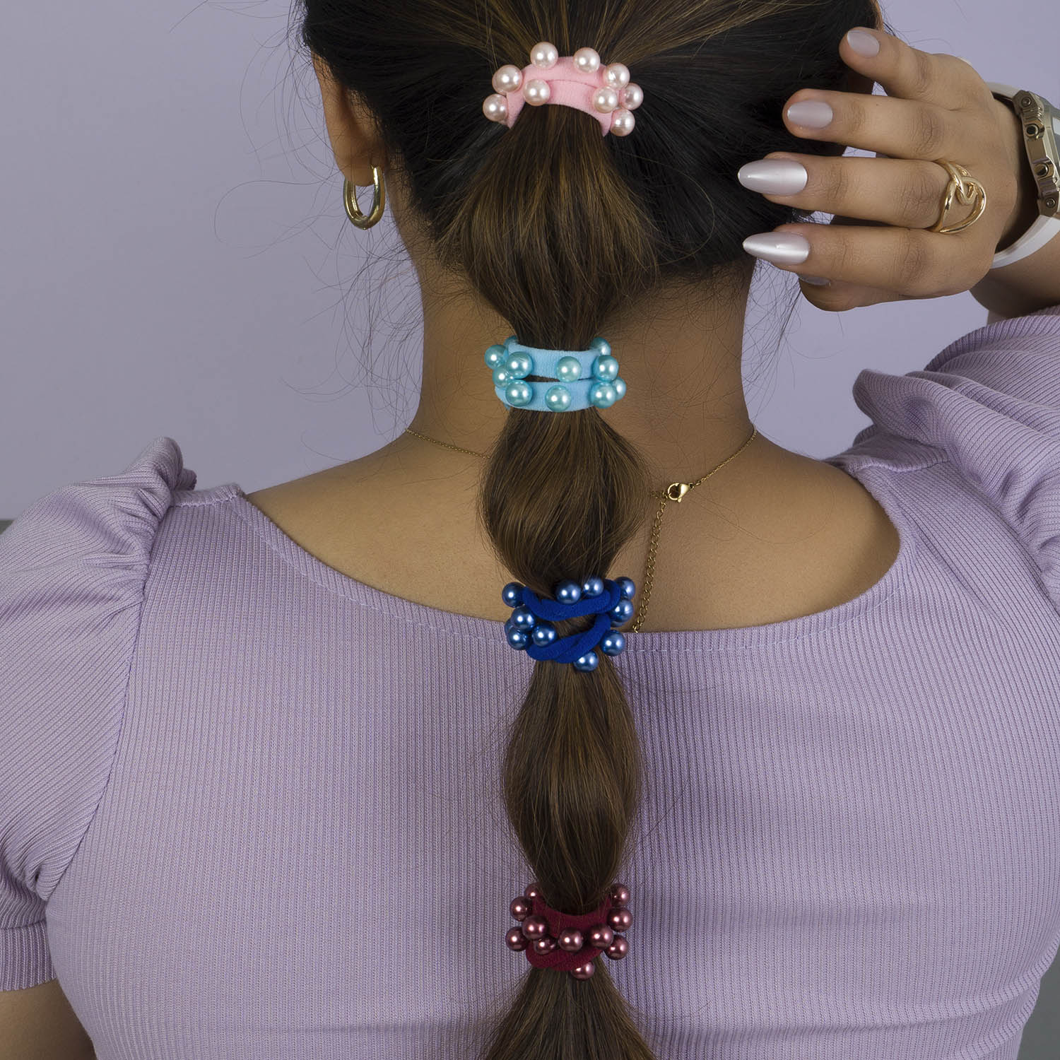 Crafted with soft, stretchable material and adorned with delicate pearls, these ties are gentle on the hair while providing a secure hold. π