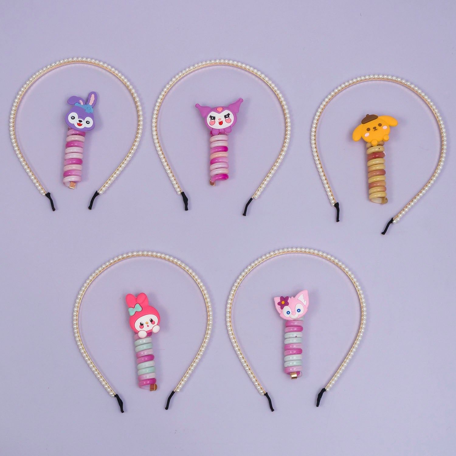 Pearl hairband with spiral hair tie (12 Sets) - UBKWS934
