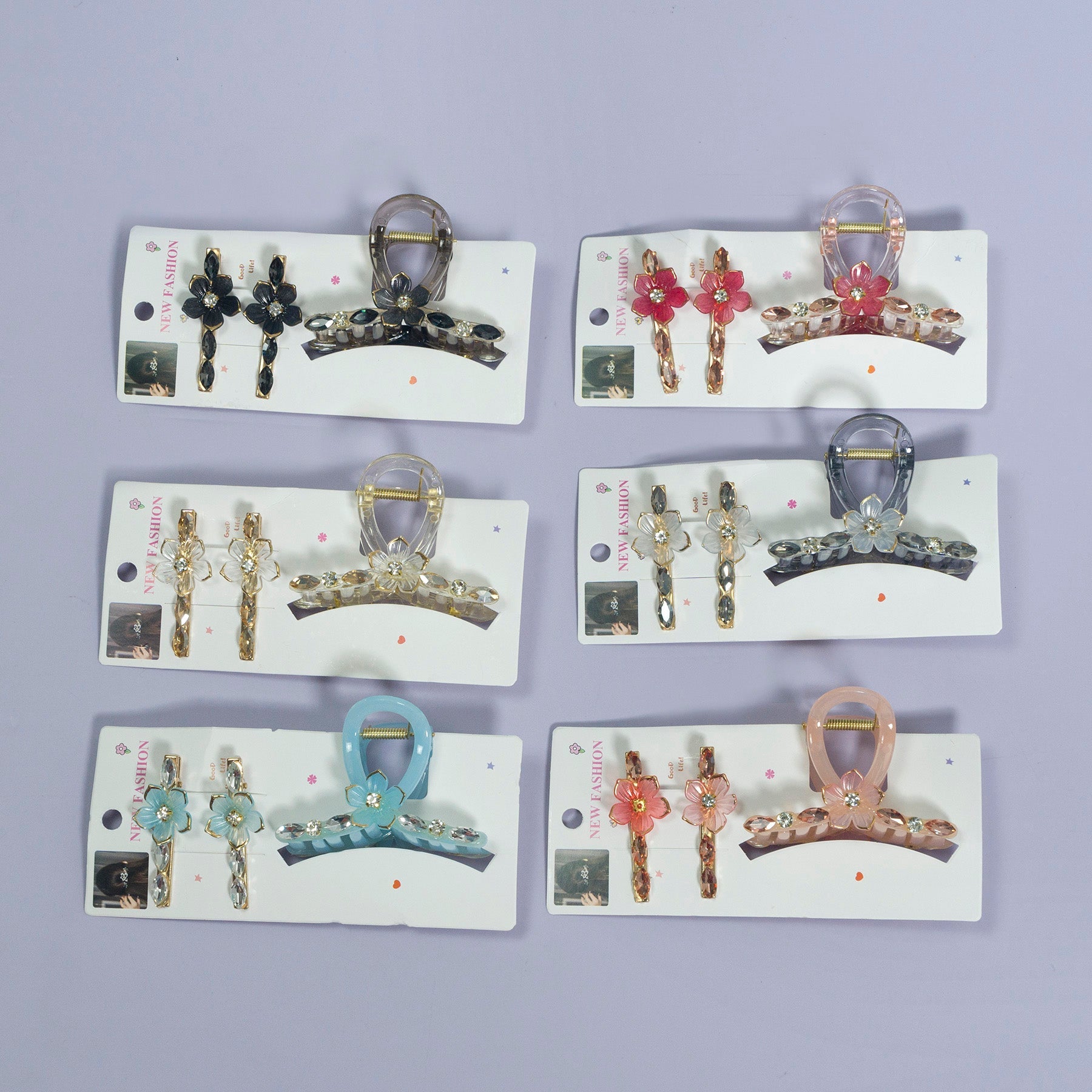 Stone & Charm Hair Claw + 2 Pins (12 Sets) - UBKWS1101