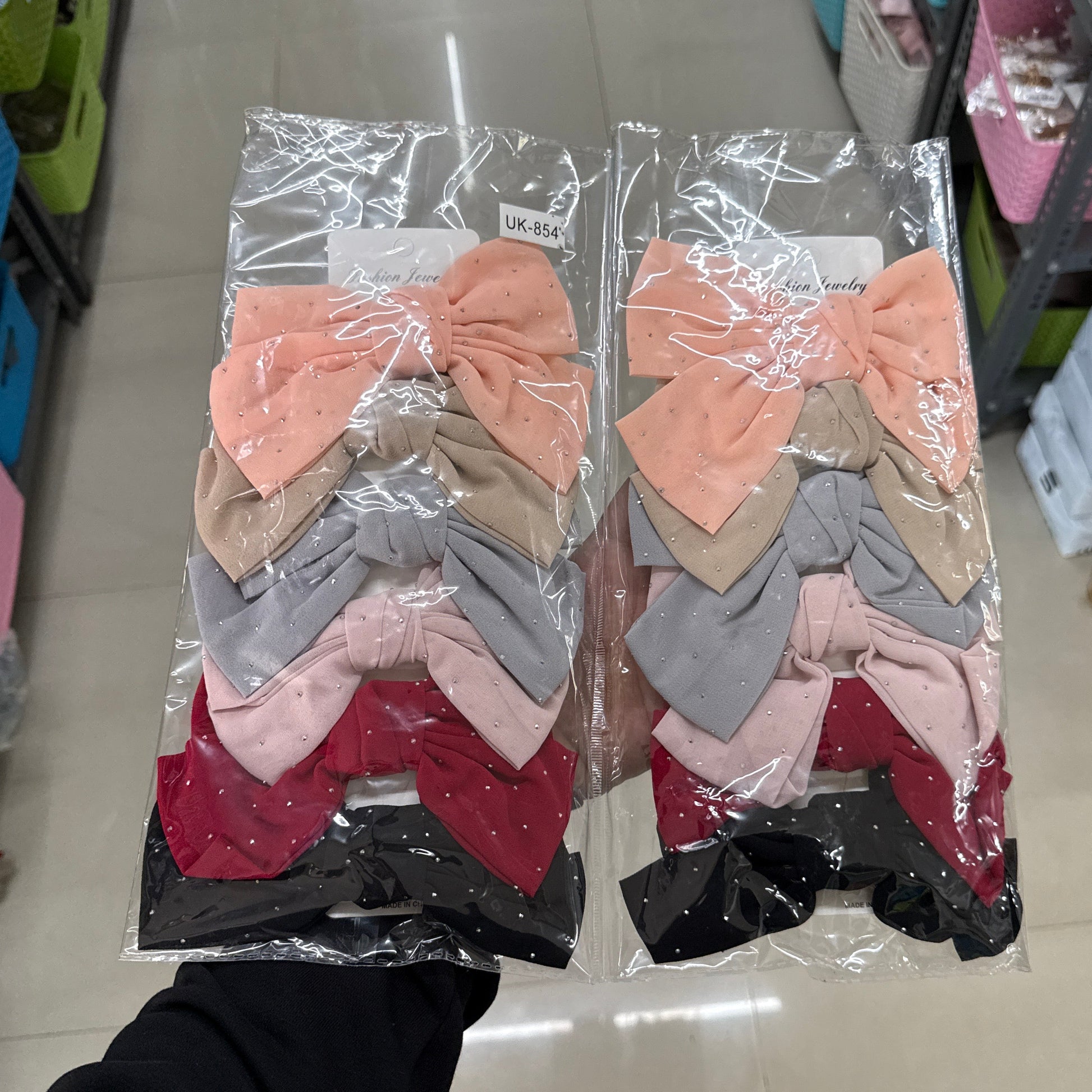 Studded Fabric Bow Hair Clip (12Pcs) - UBKWS1066